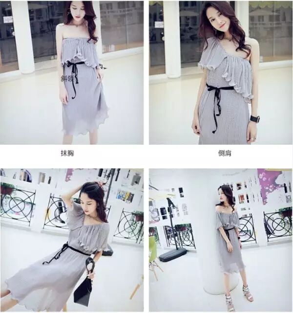 ▽2016夏季新款原厂家直供欢乐颂同款压褶百变一字领精品欧洲站女装