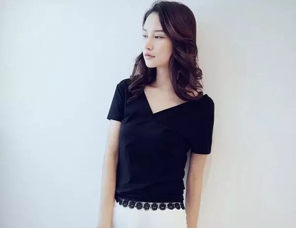 ▽2016夏季新简约蕾丝打底衫短袖韩范纯色v领纯棉体恤秋修身女