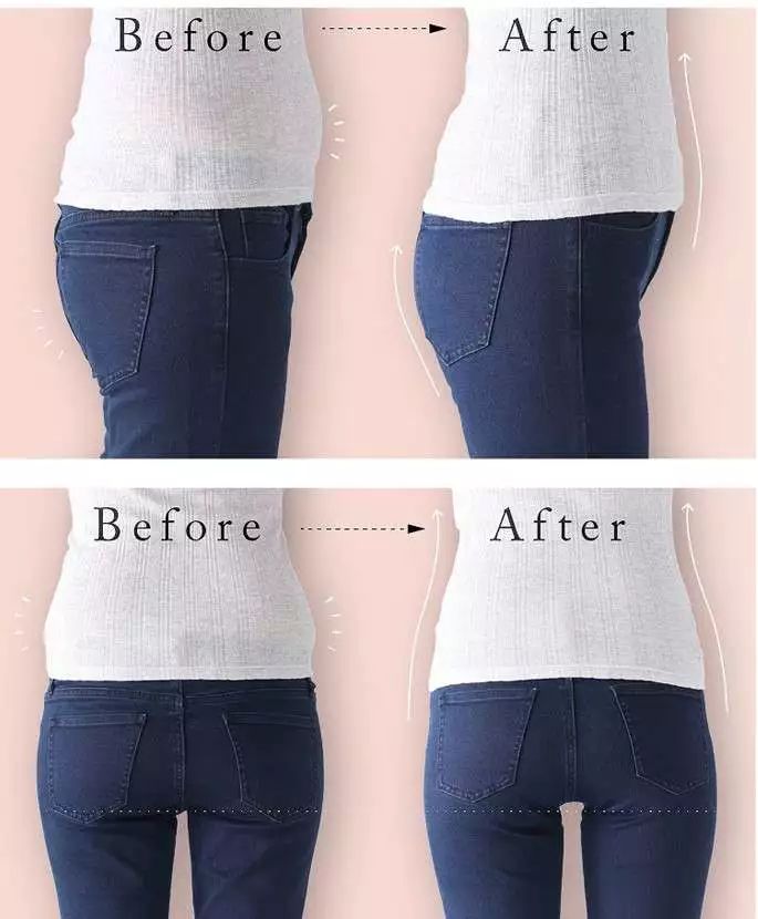 它可以紧紧地将臀线周围包裹,提升臀部线条;强压支撑技术能起到支撑、矫正骨盆的作用。还可以达到收腹、紧致腹部线条的效果。看一下对比图,真的很明显。