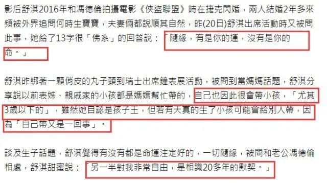 舒淇冯德伦:结婚八周年,没有孩子的婚姻,一样幸福 天亮了 港台男星 2024-04-19 16:14:10 352 创作不易,用心坚持,欢迎请BaGua喝几杯爱心咖啡!打赏并支持本文 打赏并删除本文 01我曾被一读者问到:“如果没有孩子,是不是就只能和伴侣离婚了?我因为身体的原因不能生育,感觉自己好生亏欠他。”我给她的回复是:“没有孩子并不是你的错,哪怕是因为你身体的原因生不了孩子也不是你的错。不要太过责备自己,耿耿于怀,而是要跟伴侣坦诚沟通,看他的意愿是什么?他要是更看重孩子,受不了没有孩子的婚姻,你们离婚就好了。自己一个人也是过,不结婚也没什么关系。”这个世界上有很多没有孩子的夫妻呀,人家不还是照样过得好。两个人结婚,又不一定是为了要有个孩子,你们过得幸福快乐就好了,孩子有了是缘分和责任,若没有,那就坦然接受,接受不了,目标达不成一致,那就干脆离婚各过各的。最为核心的是什么?两个人要在孩子的问题上达成一致,切莫内讧。在娱乐圈,舒淇和冯德伦,也曾因为“没孩子”遭到一些网友的质疑。你看他们现在,不是过得很幸福吗?4月16日是舒淇48岁的生日,又恰逢是他们俩的结婚周年纪念日,冯德伦为舒淇布置了一小型的聚会,就跟办婚礼一样,他们俩还穿上了中式的结婚礼服。舒淇发微博很感慨:感谢你这么多年的陪伴,谢谢你今天所布置的一切,想说的太多,谢谢你,谢谢你,谢谢你。也是情真意切,爱到了骨子里。对于此,冯德伦以一张图片回应:你爱我,我都知道。他们都已经快50岁了,两个人还能这么甜,让人很是羡慕了。同样是没有孩子,耽误了他们婚姻幸福吗?没有。我记得有一年,同样是在舒淇生日的时候,当时冯德伦罕见秀恩爱表白舒淇:“晚安,过生日的女孩,永远18岁,永远美丽。”那是在2020年,当时的他们结婚刚满四周年,他们秀恩爱的照片打破了离婚的传闻,然后就有网友在微博上评论舒淇:我总是奇怪,不生孩子,何必结婚,一张纸而已!我们来讨论一个话题:不生孩子何必结婚,一张纸而已!难不成结婚一定要生孩子吗?有的人喜欢孩子有的人不喜欢,这有什么好非议的。婚姻是两个人对彼此的承诺,是一种责任,难不成不生孩子就意味着不幸福或者说是一种缺憾吗?我自己是有孩子的,但是我从不会这样认为。结婚后要不要生孩子,什么时候生孩子,这都是人家的自由。生不生都与婚姻的是否幸福无关。02时间真的过得好快,当初舒淇和冯德伦是突然宣布结婚的,在2016年他们完全没有预兆,就在微博上宣称结婚了。下定了决心,就互相纠缠一辈子。也不是因为怀孕着急结婚,而是两个人达成一致,想结就结了。他们结婚后,舒淇出席某品牌活动时,也被记者提及到“怀孕生子”一事,那时候舒淇没有避开问题而是选择正面回应:“随缘,有是你的运,没有是你的命。”被问及带孩子的问题,她还说可能会给别人带,毕竟自己带又是另外一回事。当被问到冯德伦的意见时,舒淇表示,另一半对我非常的自由,是相识20多年的默契。生孩子这件事本来就是随缘的,有了是幸运,没有也无妨,凡事不能强求。关于生孩子这一块,我向来认为,生孩子从来都不是到了某个年龄必须要生,也不是不生孩子的人生就不完整,也不是为了谁想要继承后代这些乱七八糟的“从来如此”。生孩子对于人来说不能再像动物那样归结为自然繁衍,而是应该源于爱呀。凡事都要看缘分的,有或无没什么关系,只要是你们两个人自己的选择就好,没有孩子的婚姻也可以很幸福,未必会缺憾。我有个朋友,他们结婚几年一直没孩子,其实他们俩很喜欢孩子,也到处寻医,但是很难,求而不得,她到后面也看开了:“如果我和他真的注定没有孩子,那就不要了呗,两个人就快快乐乐该怎么过就怎么过。我们这一生并不是非要生个孩子来证明什么?有最好,没有也不强求。”唯有看淡,才会让自己过得更为开心一些。也别把“生孩子”看的太过重要,有很多夫妻他们生了孩子,可是婚姻过好了吗?不还是没有,夫妻关系经营的很差,让孩子生活在一个不幸福的原生家庭里,就是对孩子好了吗?不还是有很多夫妻有了孩子依然过不去婚姻的坎,然后又离婚,还是伤害到孩子。两个人能过得好才是最重要的,孩子从来不是婚姻是否幸福的关键性因素。03娱乐圈还有一对结婚后一直都没孩子的夫妻:梁朝伟跟刘嘉玲。他们俩在2008年的时候就结婚了,现如今已经有将近16年了。结婚的时候刘嘉玲是43岁,按理说那个时他们俩还是有机会生孩子的。关于生孩子这件事,我记得梁朝伟说过一句话:“为什么要生孩子?我和嘉玲现在的生活很好很幸福。孩子的出生只会让我更加担心与不知所措,本来嘉玲已经够让我担心的,我没办法想象怀孕的她让我有多担心。”梁朝伟的回应中对刘嘉玲满是疼爱,有没有孩子不是最重要的,关键是两个人自己的生活是否幸福。或许他们也想要孩子,但是可能因为身体或年龄的原因而不得不退而求其次。没有孩子也未必就意味着人生不完美,人生可以是很多样化的。结婚16年,依然能幸福如初,不就是说明他们之间的爱情更加的弥足珍贵吗?到底什么才是真正意义上完整的人生?结婚生子,然后看着孩子长大,尽责,直到孩子有自己的人生。我们会发现其实孩子不是我们的孩子,他早晚有一天会离开我们,我们也不能因为给了他生命就可以肆无忌惮地干涉他。孩子有孩子们自己的生活,而你也有你的生活。如