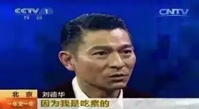 在“非常静距离”节目中,刘德华聊到了素食。他说,吃素是一件很开心的事,看见助理大鱼大肉,他也从来不馋,在外面有时候吃得不是太严格,但在家里一定吃素,因为他全家人都是素食者。