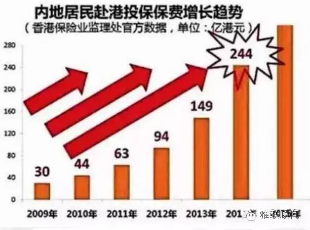 香港保险现在特别火,2015年内地客户赴港买保险的支出达到了316亿港元,同比增长30%,在香港保险市场新单保费中的占比将近1/4。也就是说,香港人身险市场1/4之一的新单保费收入都是内地客户贡献的。
