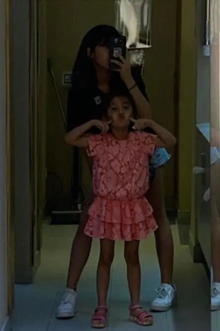 终于接到妹妹们的梧桐妹,转眼便拉着两个妹妹一同摆pose自拍,话说女孩子果然对拍照没有抵抗力啊……梧桐妹本人身穿黑色上衣搭配黑色短裤,一身打扮非常舒适朴素,留着一头披肩长发的她给人感觉像其妈妈贾静雯一样温柔~