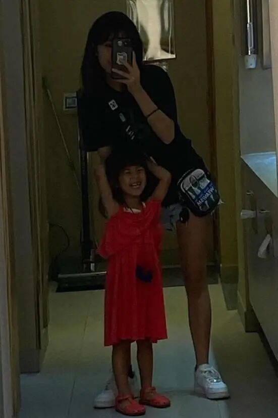 正处于少女时期的梧桐妹个头也窜的很快,瞧着几乎是要跟妈妈贾静雯一样高了。她身穿黑色T恤搭配黑色长裤,一身all black私服简约朴素;而妈妈贾静雯则穿了一身白色衬衫裙,看起来知性又显气质,母女俩各自穿一黑一白还巧妙凑出了“亲子装”的感觉~