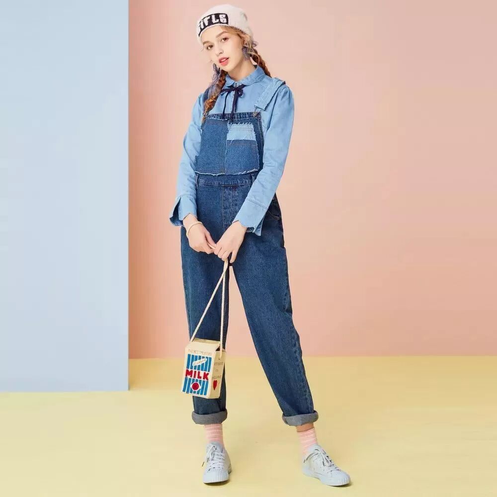 背带裤也正好赶上这股风潮,卷土重来。原本是从农场工装改变而来的背带裤,突然变成了时髦精们争相演绎的精品。