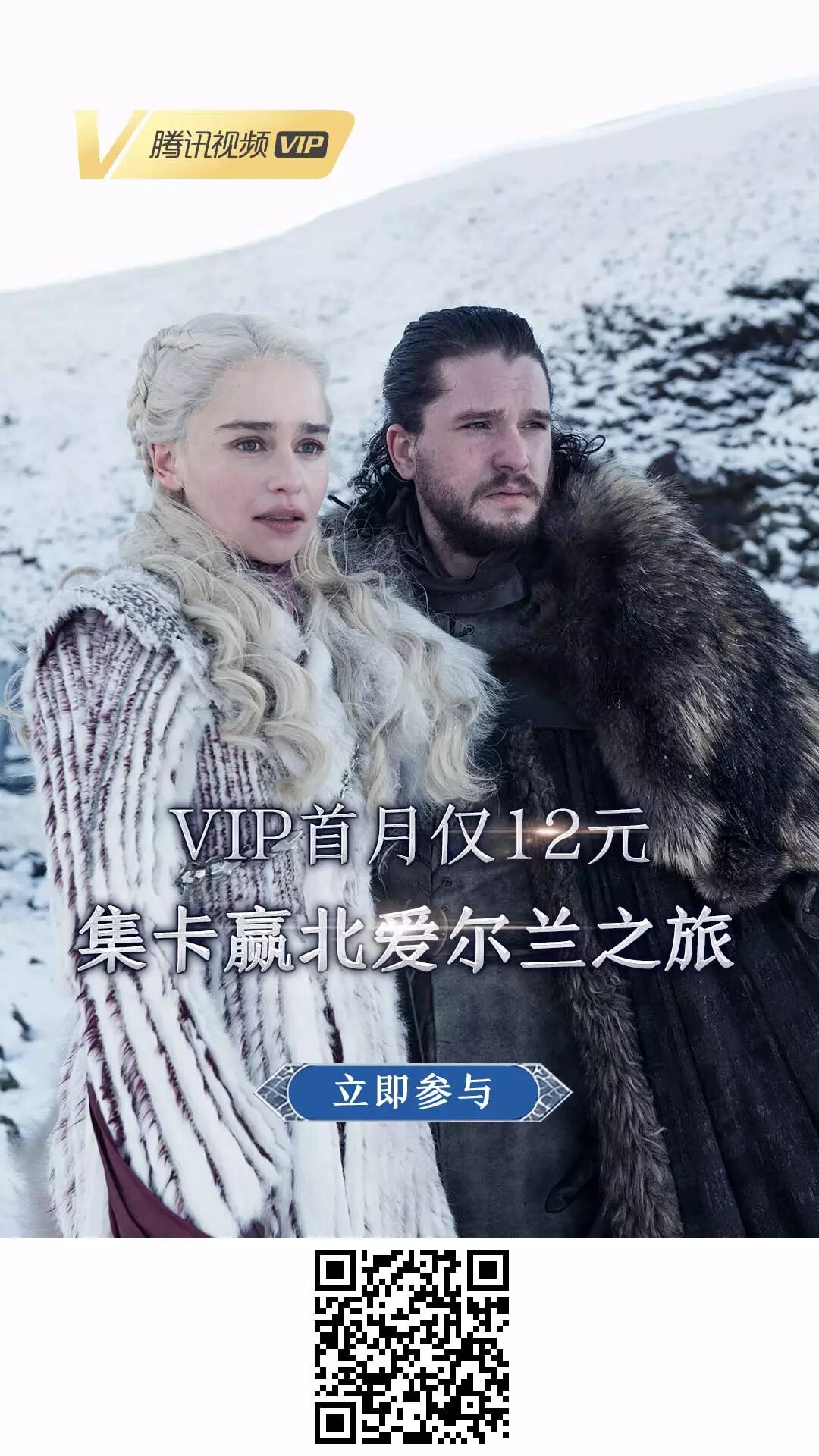 《权力的游戏第八季》探访北爱尔兰,打卡权游取景地,只要集齐全部6种权游家族卡,腾讯视频VIP送你去!VIP特惠除了首月12元,还有新玩法和各种惊喜礼品。啊呀,说得妞的小心脏也砰砰期待呐!快复制链接了解详情、参与活动(或看下图扫码)↓