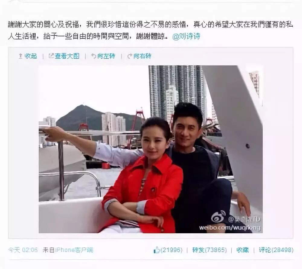 之后刘诗诗也在微博上做出了回应,承认了恋情。