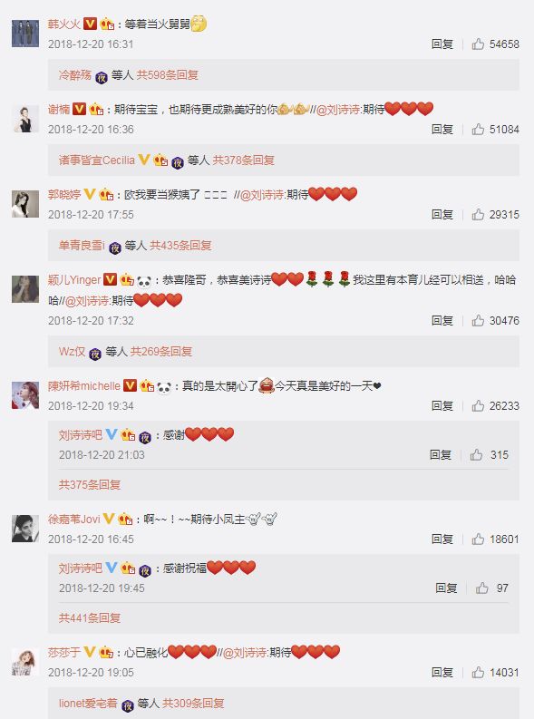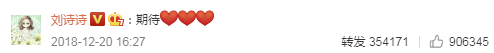 刘诗诗也转发表示“期待”,并且配上了三颗小心心的表情,幸福喜悦之感不言而喻。