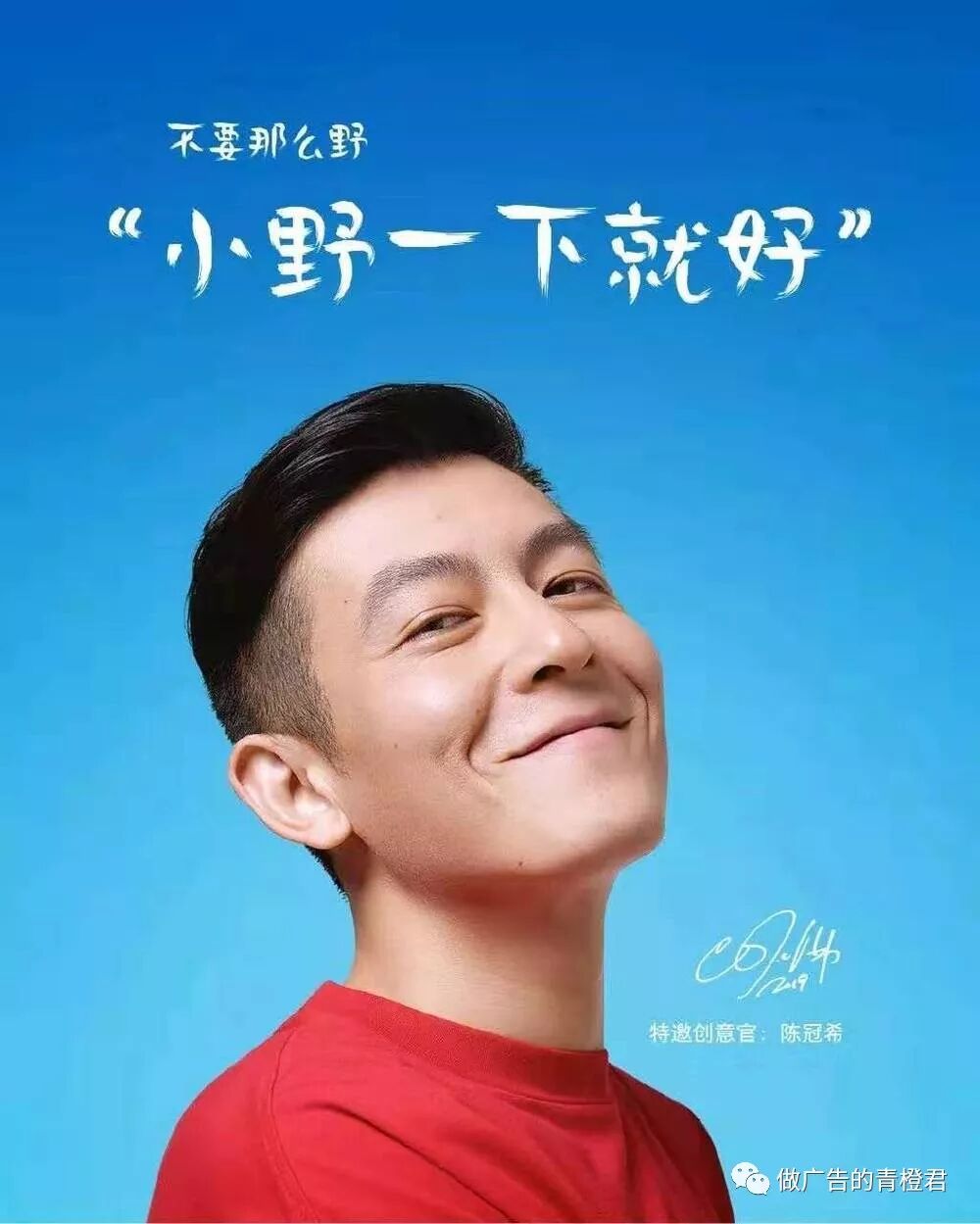 经历过人生的低谷和波折,这些话更像是陈冠希对大家真正想说的,用他真实的性格去赋予品牌价值和态度。他本人带点痞气的形象把广告主题“不要那么野,小野一下就好”诠释的淋漓尽致。