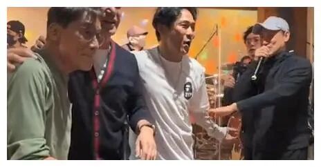 在派对上,钟镇涛和梁家辉还在台上演唱,将氛围推向高潮。这一幕让现场的气氛变得欢快热烈,仿佛时光倒流,将大家带回到充满音乐和欢笑的时刻。