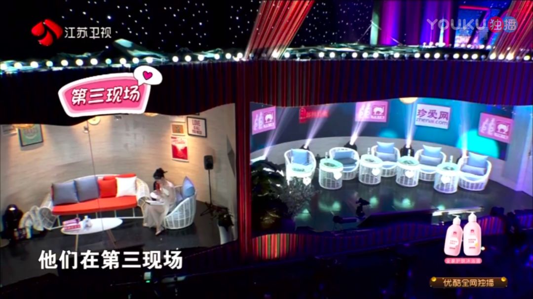节目一共设置了三个现场,第一现场,是主持人、女嘉宾的父母、和男嘉宾的互动主场。第二现场是6个女嘉宾,第三现场是男嘉宾的父母或亲友。