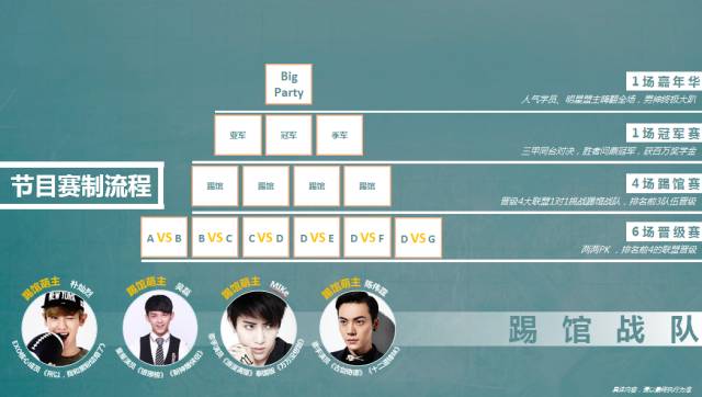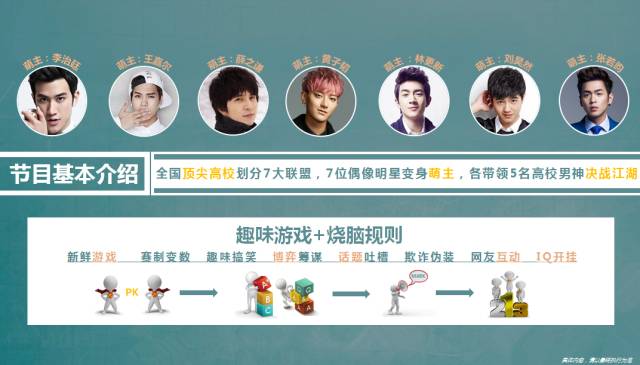 内容简介:节目从全国顶尖高校里面选拔出35位高颜值、高智商、个性强、才艺佳的风云学长,他们将组队成七大联盟,在7位明星盟主的带领下通过爆笑有趣的花式游戏比拼以及激烈刺激的烧脑谋略突围克敌,争夺终极联盟之冠,赢取百万奖学金。 类型:首档聚焦高校的网生男神综艺竞技秀 主持人:何炅 明星盟主:李治廷、王嘉尔、薛之谦、黄子韬、林更新、刘昊然、张若昀(拟邀) 上线时间:2016年Q3 节目时长:共12集;50-60分钟/集 集均VV:3000W