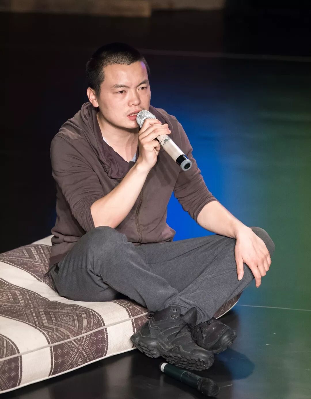 王音洁:大家实际上可以看得出,我们真是个“草台班子”哈。我们没有一个专业的演员,但是我始终是一个质疑所谓的专业性的人。我觉得只有对事情的敏锐感知和创造能量的问题,没有专业跟不专业的问题。麦克卢汉早就已经讲过了, 艺术家不是光只有“艺术”这件事情。在任何一个行业里面,他/她能敏锐地用自己的知识和对目前的社会变化的感知,交织在一起,从而有所作为的人,就是艺术家。在座的下次我们或许可以一起合作,再来丰马,我们再来做杭州这边的原创剧。前天(2018年5月3日)和王老师(王炜)说,我们在做《罗曼·冯·恩琴》的时候,因为我知道王老师(王炜)是不怎么爱杭州的人,在杭州的这个氛围里面,我们很容易“爱这个城市“,但是王老师(王炜)作为一个诗人他不怎么爱杭州。照说诗人,诗情画意首选杭州,他偏偏不怎么爱杭州。事实上我跟他说,他是杭州异质性的存在,他的作品也是。我们把他的(诗歌)作品变成了一个剧场作品,更是异质性的存在。三年前是这样,三年后我觉得也是这样。过去三年,中国有那么多剧场的活动,有那么多戏剧节,很多戏剧爱好者也去过一些戏剧节吧,我想是。回头看这个诗剧,我想还是蛮特别的。下次如果再演的话,又会是另外一个版本。目前的这个版本,怎么样都觉得,还是这个城市异质性的存在。不光是放在这样一个城市吧,大概这样一个演出文本(text),就是一个异质性的存在。这放在杭州这个地方,又有一点更加不一样的意义,事实上你看,我们这几位都是这样异质性的存在。巴根是一个很爱这个城市的人,他是一个异族,所以他反而可以理所应当地,安然地享受这种不同、碰撞。像罗兵,罗兵之前自己也是一个纪录片导演,他也创作了一部非常棒的,我印象非常深刻的纪录片(《我和任定其》),就是他拍了他们家乡的一个右派。