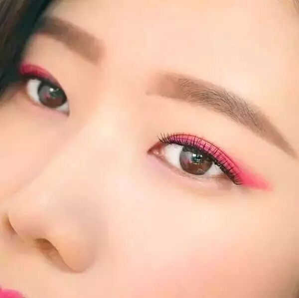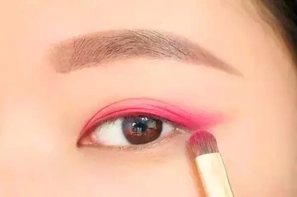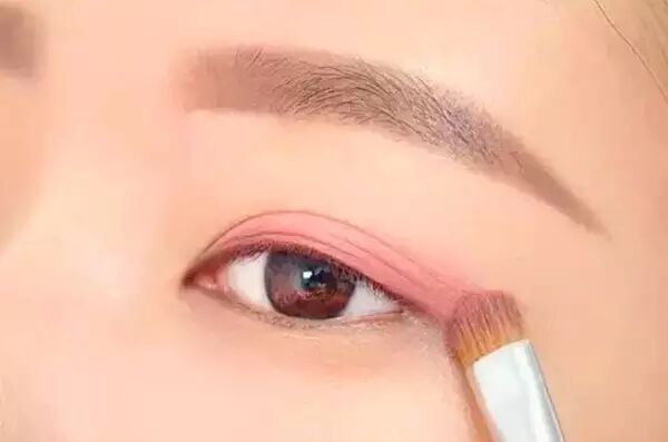 并沿着睫毛根部晕染出浅粉色眼影1/2的宽度