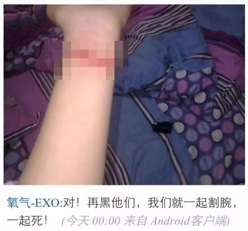 很快,就有人放出了自己割腕自杀的照片。一张,两张......
