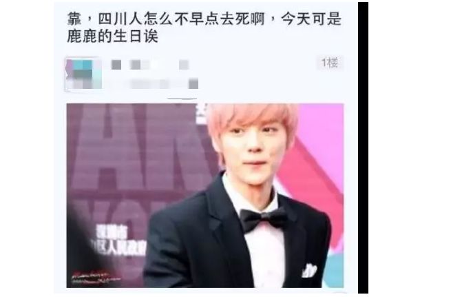 2013年4月20日,四川雅安地震。当天正好是鹿晗的生日,粉丝们欢乐地为他庆生。他们说:死了多少人都没关系,只要鹿晗开心就好!