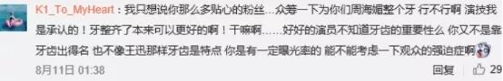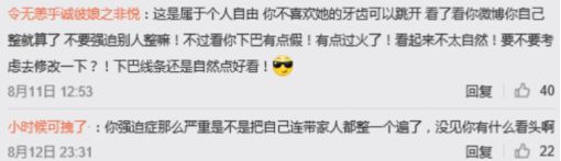 面对网友的攻击,有很多人为她辩解,为她打抱不平。有网友怼攻击她牙齿的人:“这是属于个人自由,你不喜欢她的牙齿可以跳开,看了看你微博,你自己整就算了......”