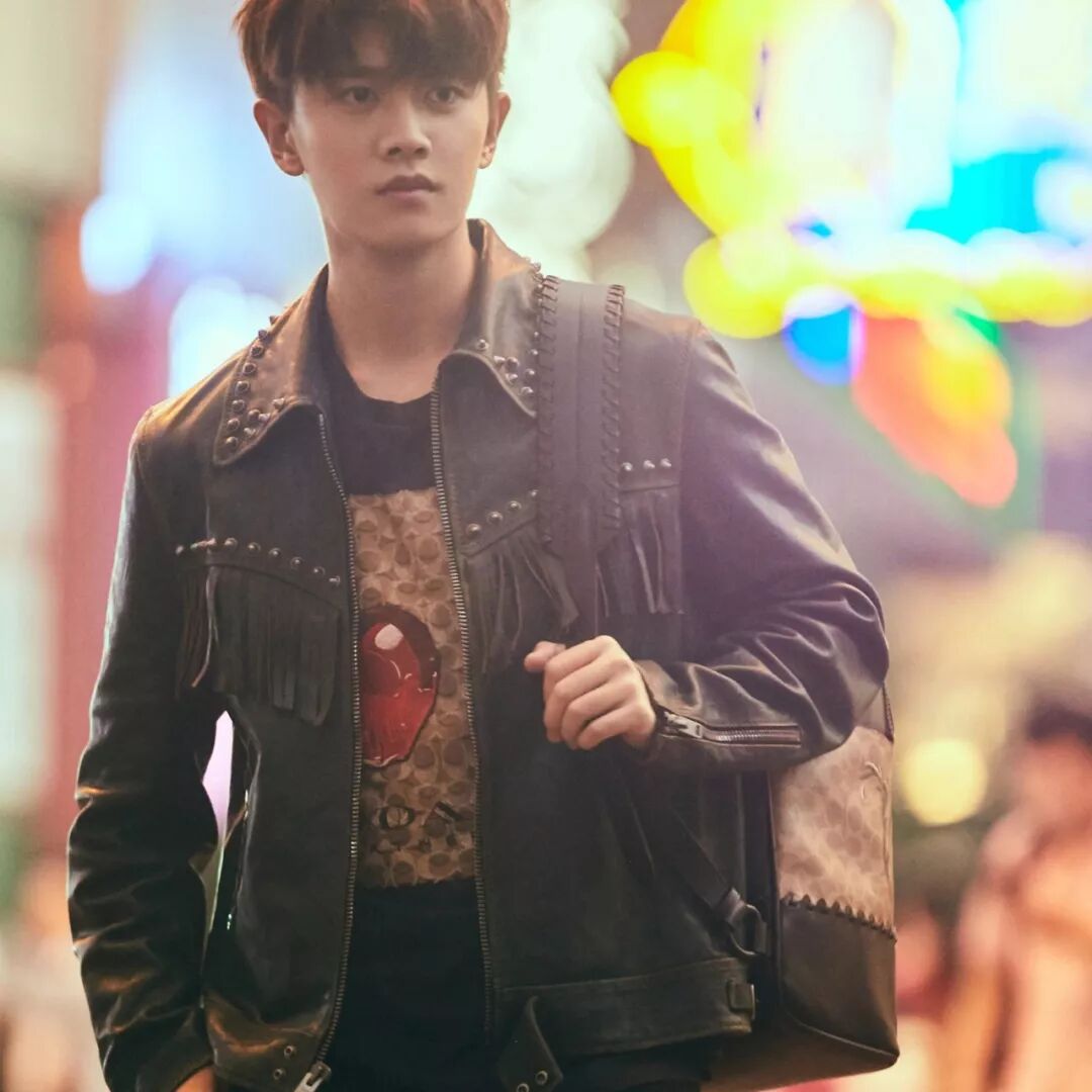 任嘉伦身穿铆钉加饰的夹克、和涂鸦纹样略带随性风格的背包,在夜色中更显潮酷,以帅气姿态赴一场期待已久的约会。