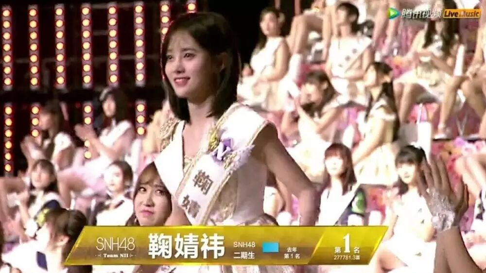 SNH48的第一名鞠婧祎也是现在整个组合最有知名度的那一个,传说中的4000年美少女就是她(其他人你们估计都不认识吧……)。