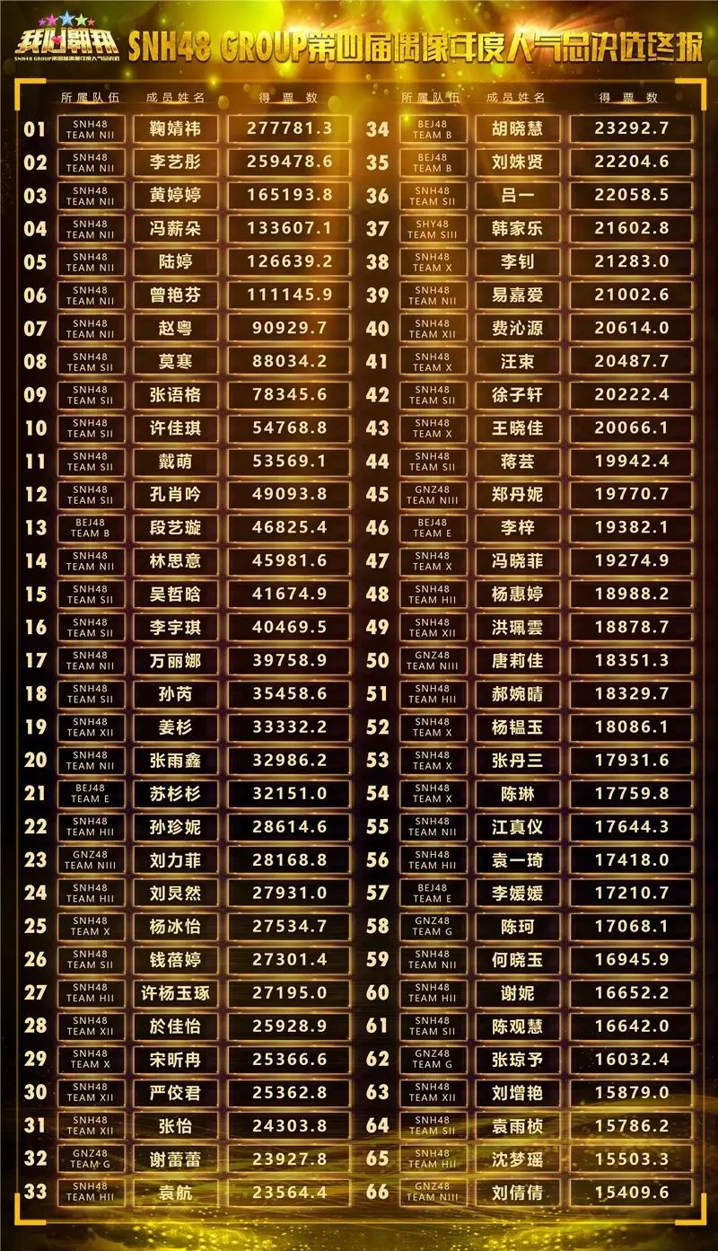 至于那些排在60名开外的,就只能继续呆在剧场里,等着来年再战,看看有没有机会出镜了。