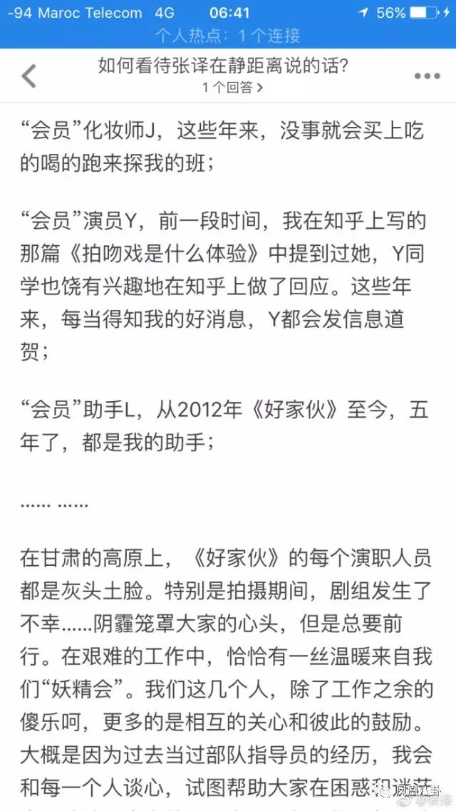 知乎上几个当事人也出来说话,说张译平常对自己很是关系爱护。