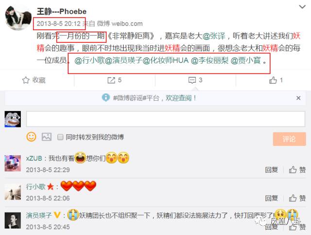 2013年还提到了这期非常静距离,艾特了其他成员。