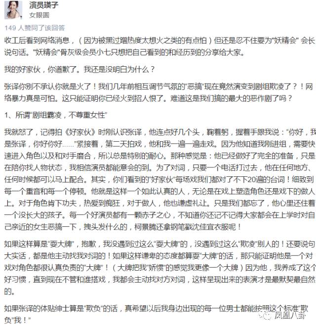 还有同组的女演员,写了很长很长的回答,立场还是挺他。