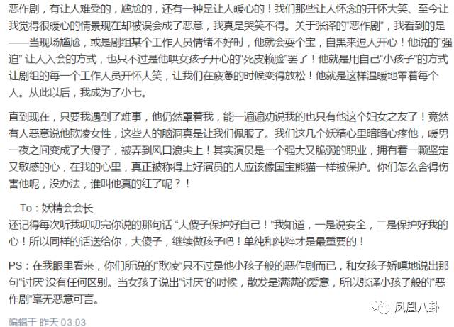 她的旧微博,是不是也能透露一些实情?因为此事张译的一些黑历史都被一一翻出,这一件事已经上升到对张译的人品、价值观进行全方面审视,小妹想说:工作很辛苦,玩闹须有度啊~~~你们怎么看呢,欢迎来评论区聊聊~