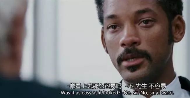电影的结尾,当克里斯得知自己被证券公司录用的时候,证券公司的老板问他“Was it as easy as it looked ”,这个历经一切心酸的中年人眼里噙着泪水说到“No sir, it wasn’t ”。