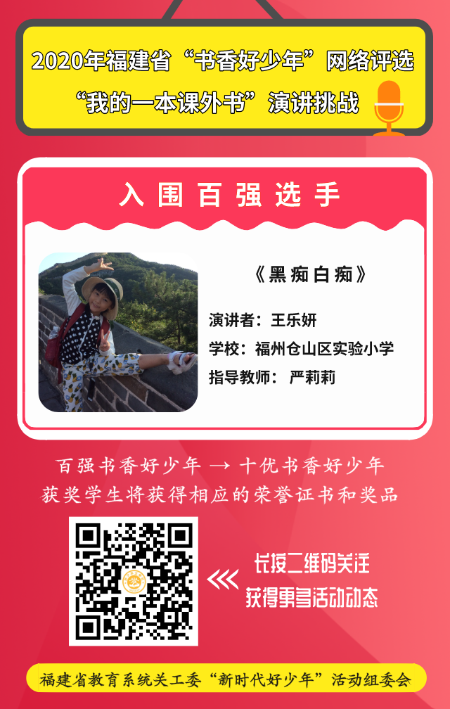 截止9月20日,活动组委会已收到1千多份“我的一本课外书”演讲视频作品,经过初选,共有100篇作品入围,其作者将成功入选百强“书香好少年”。本次入围的百强作品将进行线上展播和评选,最终评选出本届十优“书香好少年”。