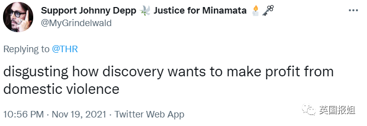“Discovery想从家暴事件中获利,恶心。”