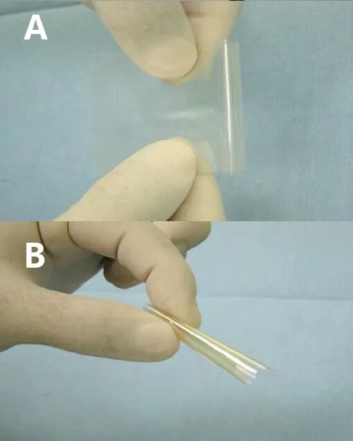 由于可吸收防粘连薄膜在干燥条件下容易破碎,此外又比较容易粘连到别的接触面,所以在腹腔镜手术期间对薄膜的放置尤具挑战性。