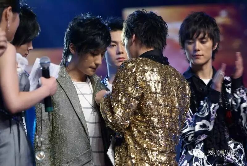 决赛的时候,除了冠军井柏然和季军付辛博吸足眼球之外,一旁早就出局的李易峰拉着亚军乔任梁的手,向观众鞠躬致谢!