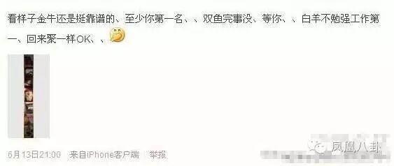 他还会以星座为代称,呼唤四少相聚:“金牛还是挺靠谱的,至少你是第一名,双鱼完事没,等你,白羊不勉强,工作第一,回来聚一样ok”(金牛是李易峰,双鱼是付辛博,白羊则是井柏然)