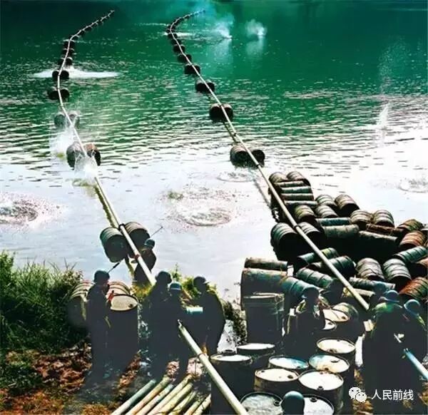 ▼某野战输油管线大队进行战时输油管道突破江河水系障碍演练