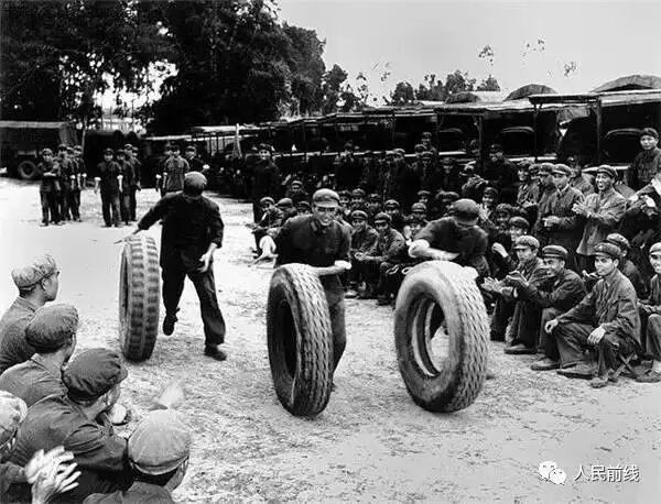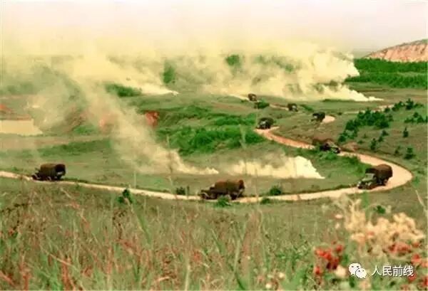 ▼1985年,某汽车部队组织通过“炮火”封锁区演练
