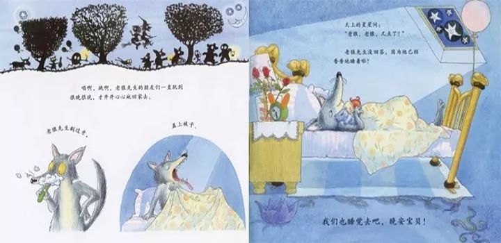 天上的星星问:“老狼,老狼几点了?”老狼先生没有回答,因为他已经香香地睡着啦!