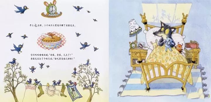 早上七点钟,二十四只小鸟吵醒了老狼先生。