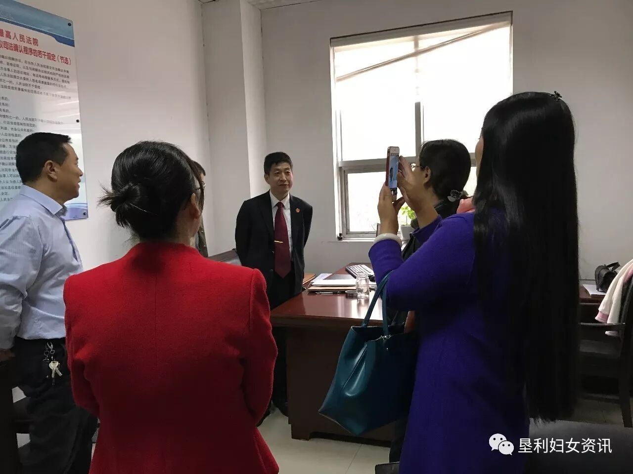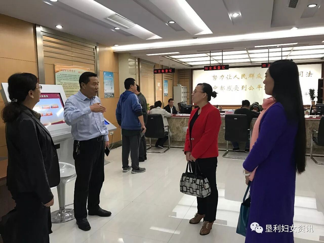 邱家梅主席一行实地查看了垦利区人民法院家事审判改革法庭建设情况,认真查看了家事审判改革工作相关文件资料。商勇副院长向调研组一行详细汇报了垦利区人民法院在家事纠纷多元化解决机制改革、家事诉讼程序制度改革、家事审判机构和专业化队伍建设、家事审判改革宣传调研工作等方面的具体做法,总结了区法院在家事改革试点工作中的经验,遇到的困难及下一步的打算。