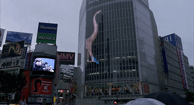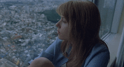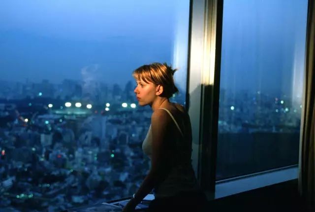 在《迷失东京》里,我们能看到很多失焦的镜头,很多大型落地玻璃下俯拍的东京,很多密密麻麻的人潮,很多光怪陆离的霓虹灯和液晶屏,很多吵杂的音效和迷乱的灯光……