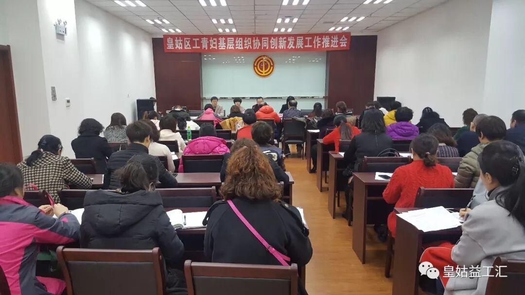 3月13日下午,皇姑区召开工青妇基层组织协同创新发展示范点工作推进会。区总工会主席卢明,团区委书记谢冰,区妇联主席宋晓英,各街道工青妇负责人及省市区三级示范点负责人47人参加了会议。会议要求:各级示范点建设要按照“有人员、有阵地、有项目、有载体、有制度、有特色”的“六有”要求,本着“因地制宜、科学合理、管用有效、共建共享”的原则开展工作。项目申报要围绕党政所期、群众所需、群团所能,针对本区域、本单位特点,采取自行组织实施、整合社会资源、购买社会服务、引进公益组织等多种方式,围绕群众工作生活需求,研究设计实施普惠、精准、常态的项目,着力健全完善力量共用、资源共享、阵地共建、活动共办、品牌共创等方面的工作机制制度。