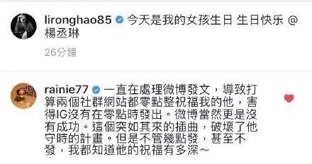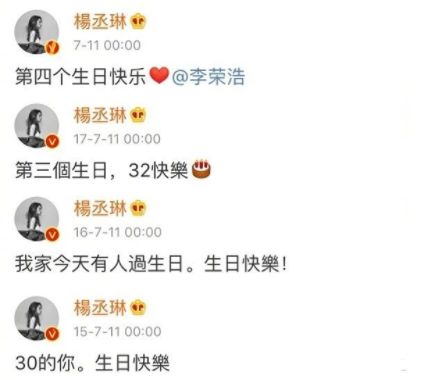 2015年,16年两人没公开的时候,他就在杨丞琳生日这天零点,暗戳戳的发“生日快乐”。