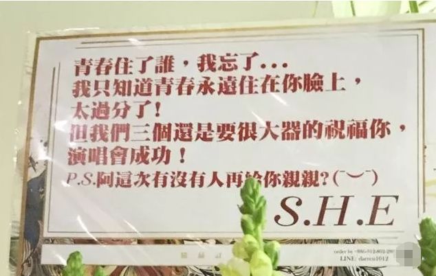 后来杨丞琳开演唱会,收到SHE的花牌都还是在调侃这件事。