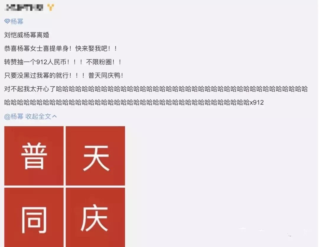 杨幂粉丝还没来得及开战,刘恺威就主动认怂。这场离婚舆论战从一开始,刘恺威就输了。