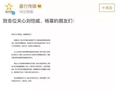 刘恺威、杨幂更是夫妻携手发微博表示我们好着呢。
