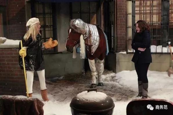 除此之外,剧中造型也蛮有看点的。尤其是Caroline,因为落魄千金的人设,她的生活一夜之间从天上跌落到地下,从沃顿商学院毕业的富婆到身无分文无家可归,只剩下一匹养不起的马…