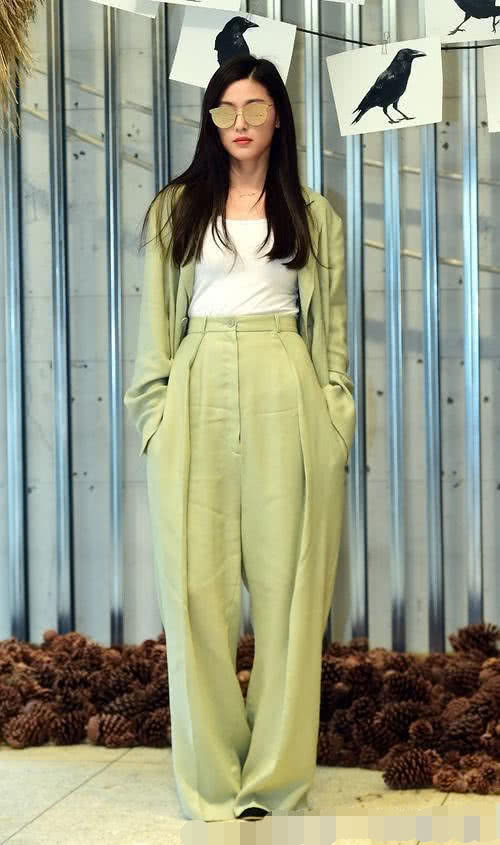 穿搭解析:白色上衣+绿色阔腿裤=休闲百搭风。