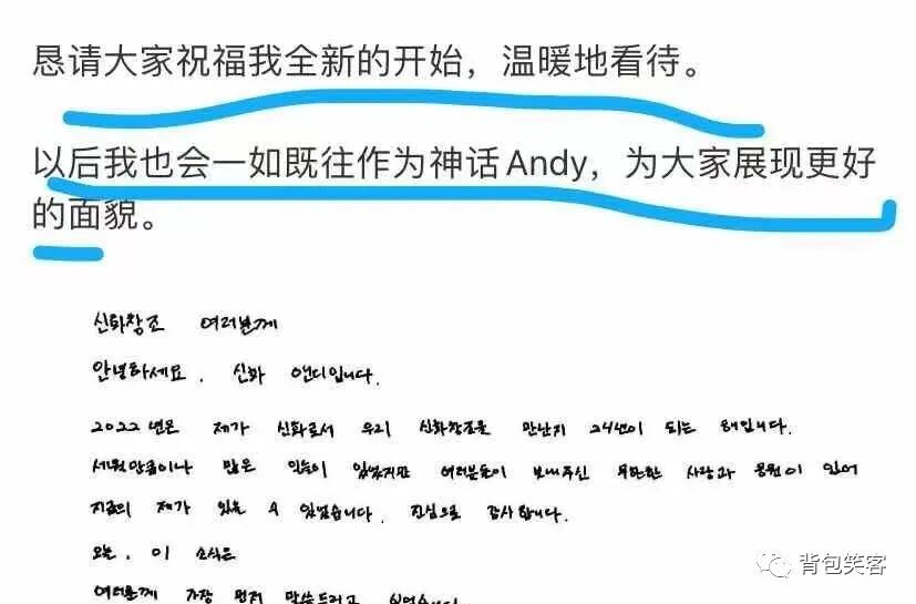 长文的最后,李先镐表示自己会一如既往作为神话Andy,为大家展现更好的面貌。