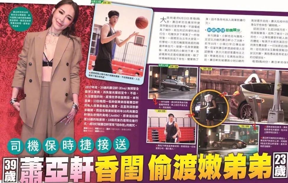 萧亚轩司机开豪车到台北某学校,接了一个“高大帅气的运动型男生”上车,送至萧亚轩家中,该男生直到深夜仍未离开。