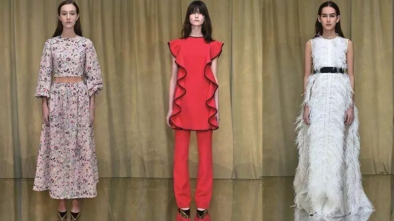 对于2016秋冬系列,张卉山将某种印花丝绸比作中国瓷器,这般比喻虽然模糊但与几何拼贴效果完美融合。1950年定制服装的形状,意味着褶边的不和谐与泛起荷叶边的欧根纱,为荷叶边下摆衬衫与彩色提花多层连衣裙添入雕塑般、女孩气的弦外之音。